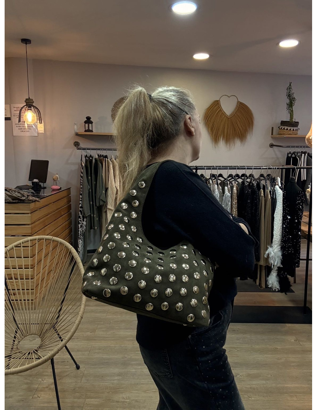 Bolso de piel tamaño medio con tachas.Espectacular.