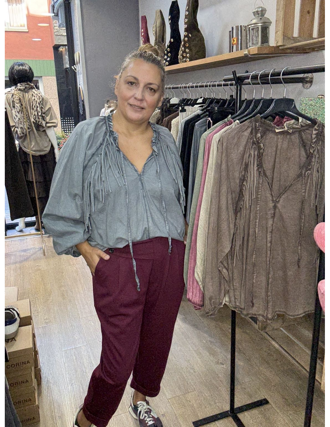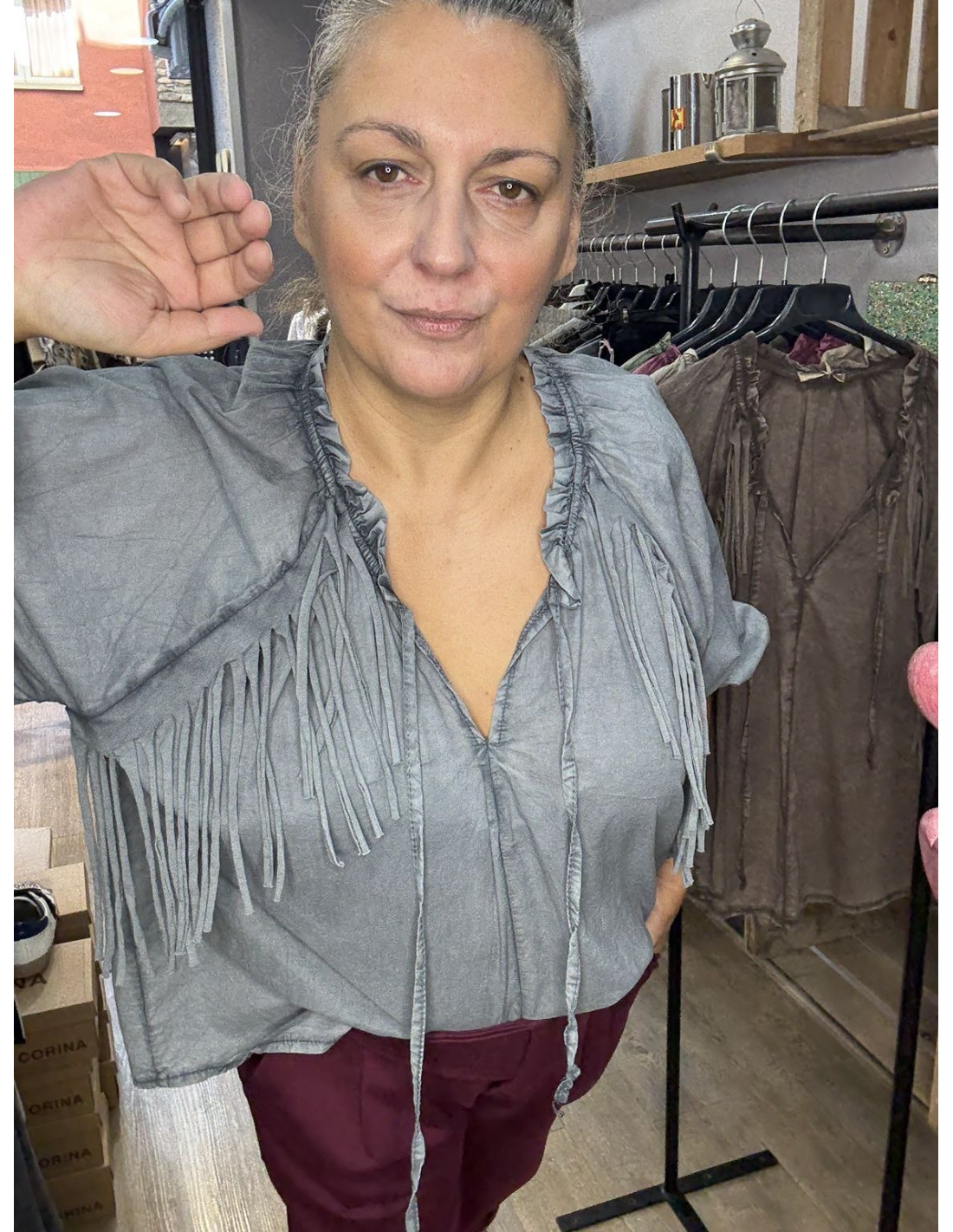 camisa de algodon con detalle de flecos muy original para tus tejanos.