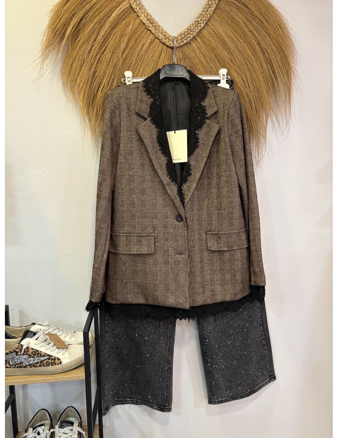 Este pantalón de brillos es perfecto para un look moderno y relajado.